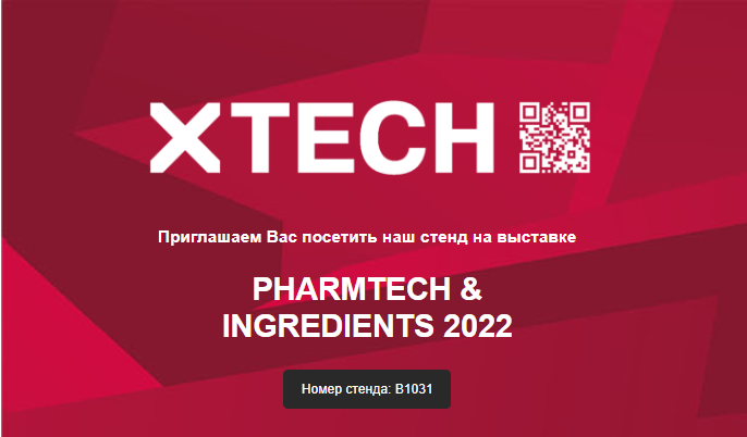 We invite you to visit our booth B1031 at the Pharmtech & Ingredients 2022 exhibition, which will be held from November 22 to 25 at the Crocus Expo IEC, Pavilion 2.