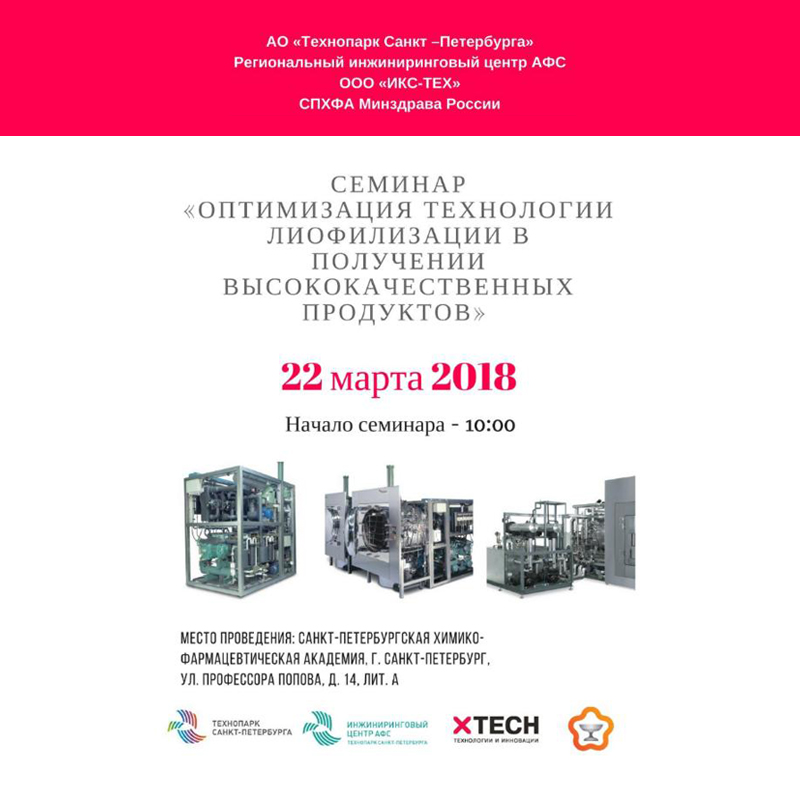 X-TECH company together with Technopark St. Petersburg, with the support of the St. Petersburg Chemical and Pharmaceutical Academy, invites you to participate in the seminar "Optimization of freeze-drying technology to produce high-quality products."